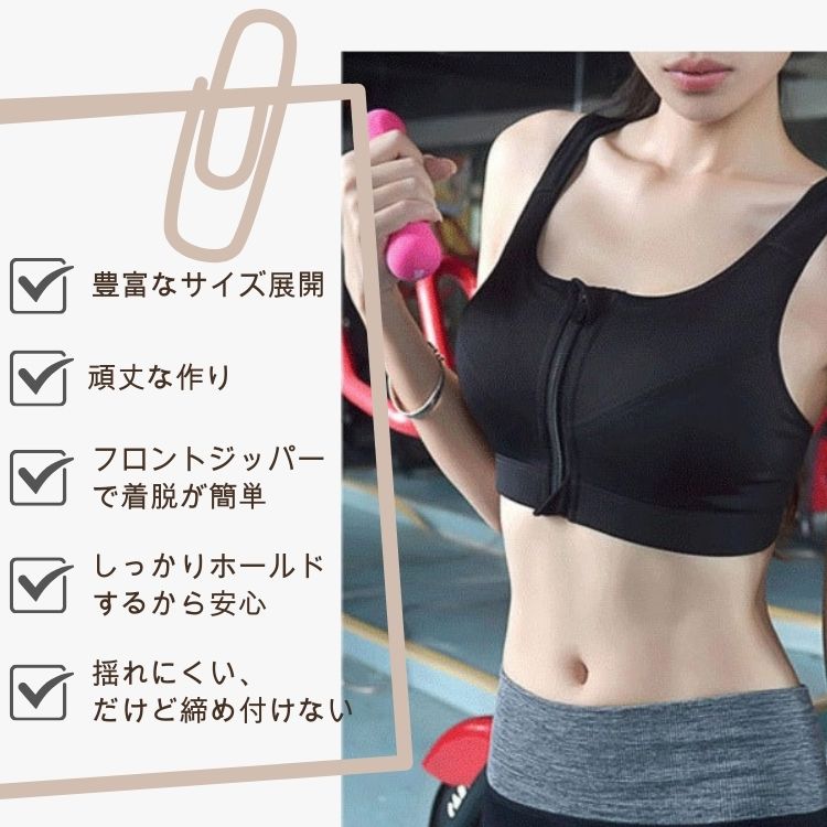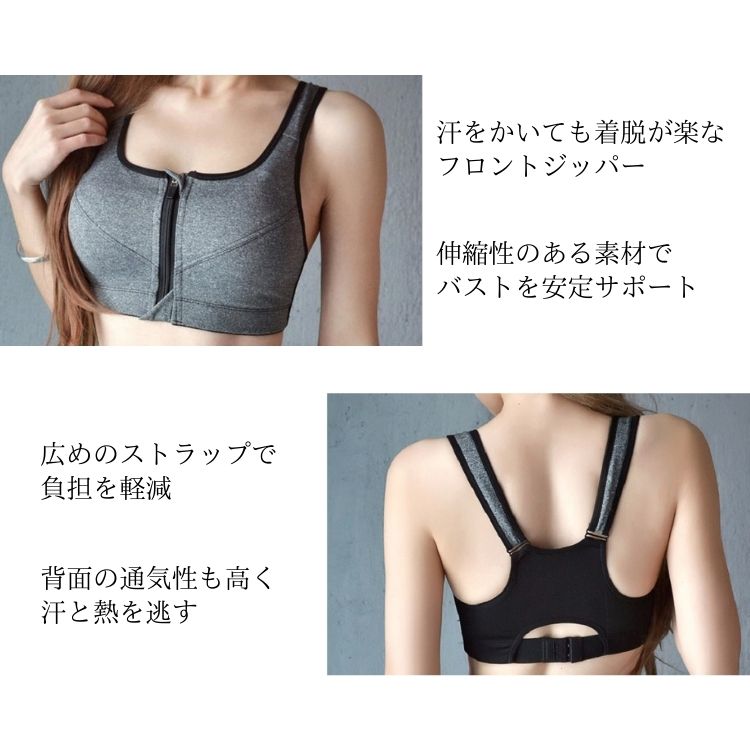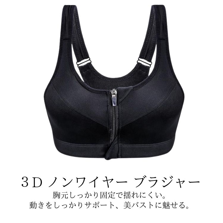 スポーツブラ 前開き フロントジッパー 大きいサイズ ノンワイヤー カップ付ブラトップ 揺れない スポブラ 簡単装着 ナイトブラ ブラトップ ボクササイズ ヨガ 筋トレ フィットネスジム
