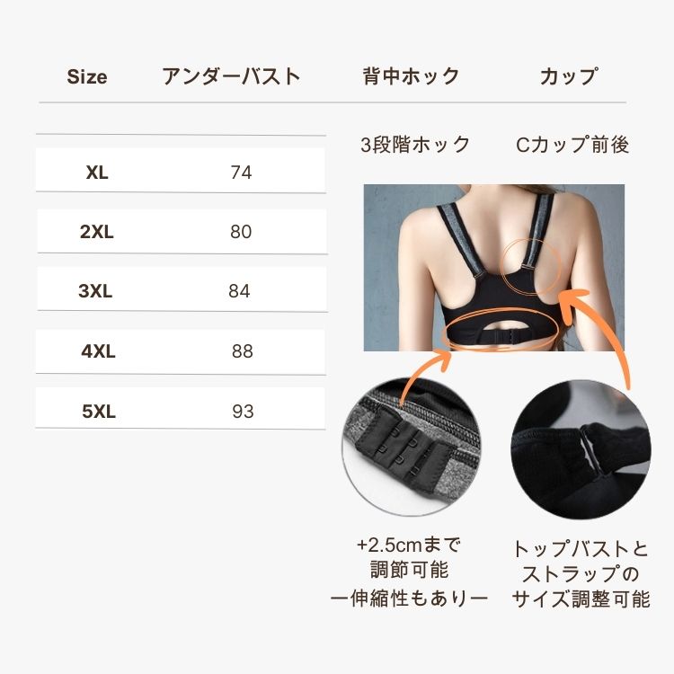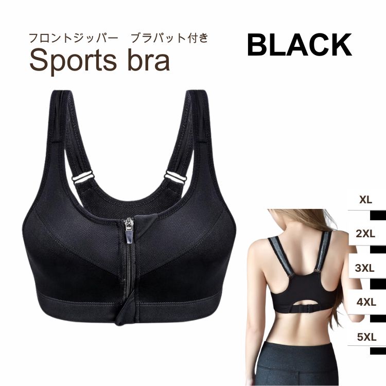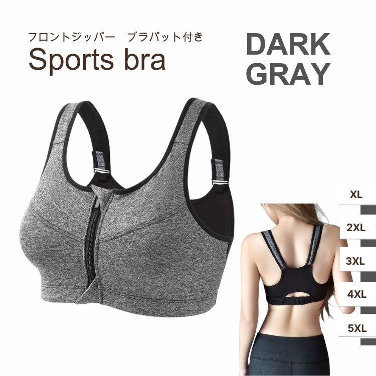 スポーツブラ 前開き フ スポーツウェア アクセサリー スポーツ用インナー レディースインナー スポーツブラ 人気 ブラック グレー XL 2XL 3XL 4XL 5XL