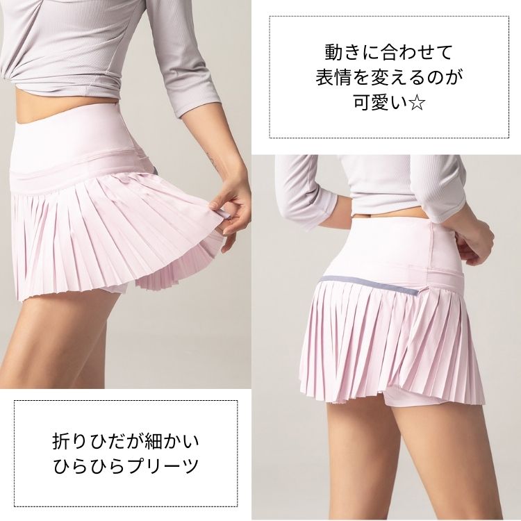 ゴルフスカート レディース ミニスカート インナーパンツ付き 一体型 両サイドポケット付き スポーツスカート キュロット ゴルフウェア ボウリング スコート プリーツ ジム テニスウェア