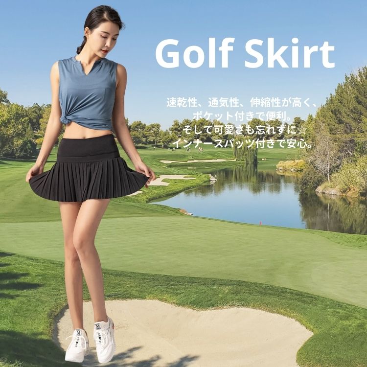ゴルフスカート レディー スポーツ アウトドア 新作 ブラック ダークブルー グレー ライトブルー ピンク パープル S M L XL 2XL
