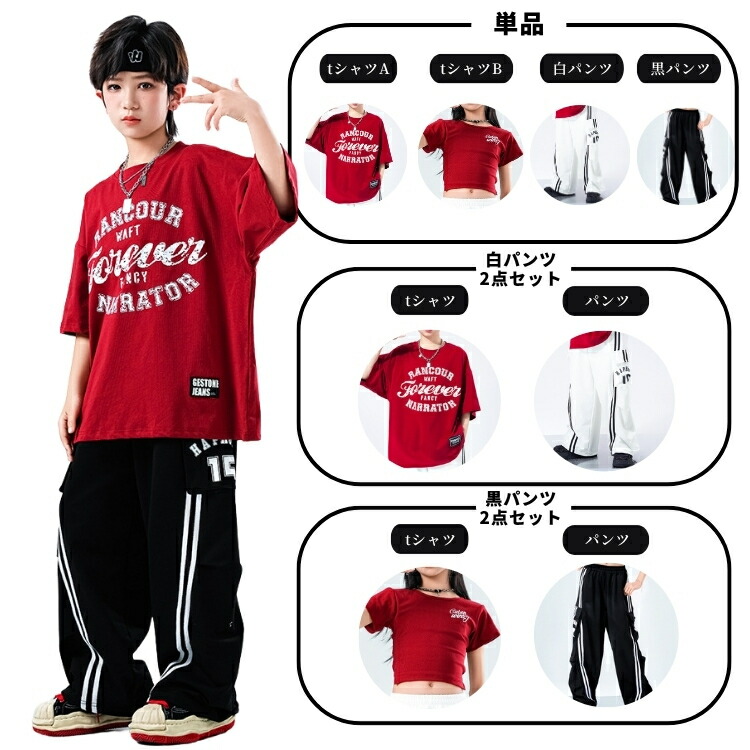 ダンス衣装 キッズ セットアップ ヒッ キッズ ベビー マタニティ 新登場! tシャツA単品 tシャツB単品 白パンツ単品 黒パンツ単品 白パンツ2点セット 黒パンツ2点セット 110cm 120cm 130cm 140cm 150cm 160cm 170cm 180cm