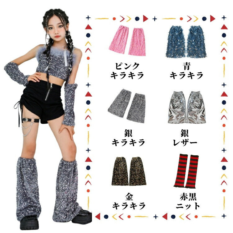 子供ダンス レッグウォーマー 小物 靴下 女の子 キッズ ダンス衣装 Y2K 単品販売 ヒップホップ 可愛い カラフル 黒 青 ブルー シルバー ゴールド グレー ピンク チュール スパンコール 赤