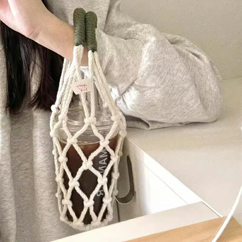 ドリンクホルダー お洒落 水筒カバー ボトルホルダー 学校 水筒ホルダー ペットボトル ボトルケース ボトルカバー 手提げ 持ち歩き テイクアウト 透かし編み アウトドア カップホルダー キャンプ