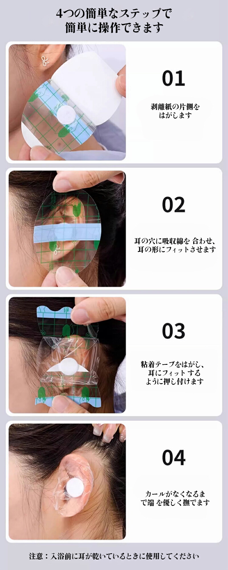 耳防水シール イヤーキャップ 耳防水カ 60枚子供用 4.4*6.8CM 60枚男女兼用 5.5*8CM 100枚子供用 4.4*6.8CM 100枚男女兼用 5.5*8CM