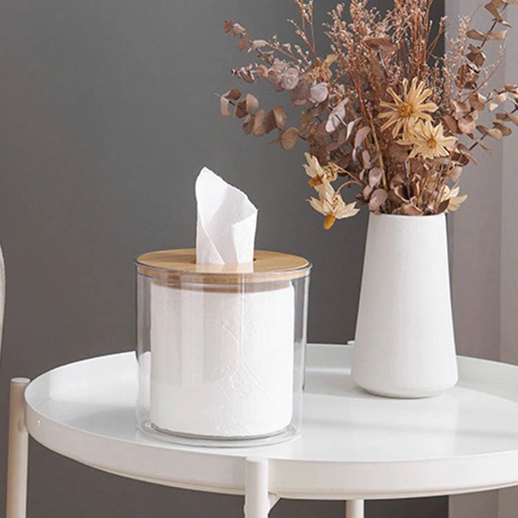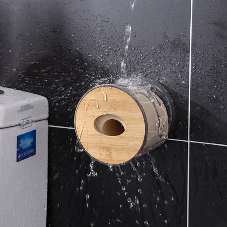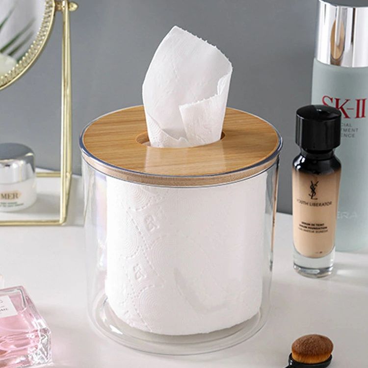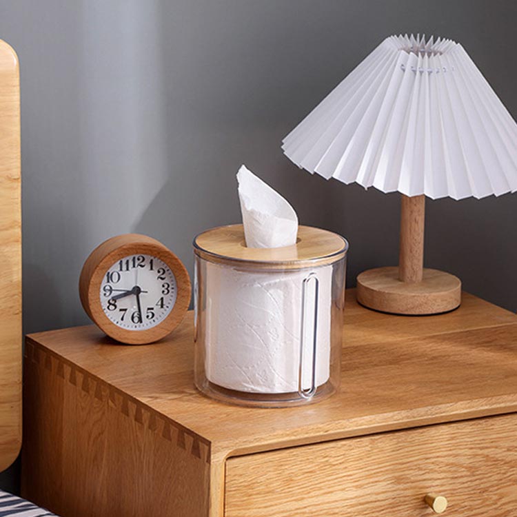 トイレットペーパーホルダー 竹製蓋 卓上 壁掛け トイレットペーパーケース ティッシュケース 円形 クリア 透明 ロールペーパーホルダー おしゃれ ペーパーホルダー カバー 収納 トイレ用品 ボックス