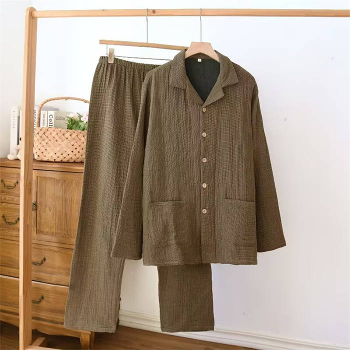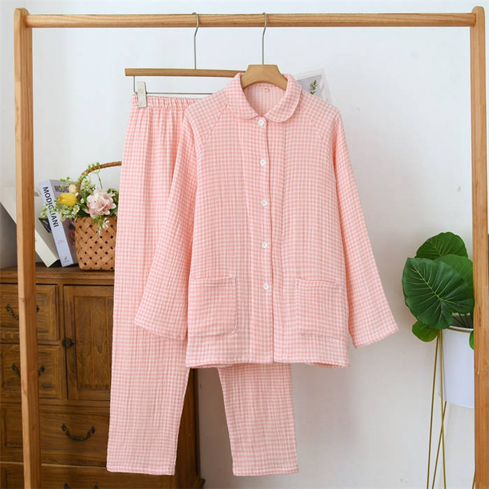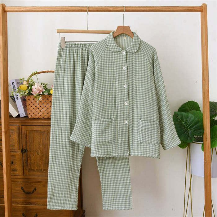 丸襟 4重ガーゼ パジャマ カップル インナー 下着 ナイトウエア 新登場! ピンク(女性) ブルー(女性) ピンク赤(女性) コーヒー(女性) ピンクチェック柄(女性) イエローチェック柄(女性) グリーンチェック柄(女性) グレー(男性) ブルー(男性) グリーン(男性) コーヒー(男性) M L XL 2XL