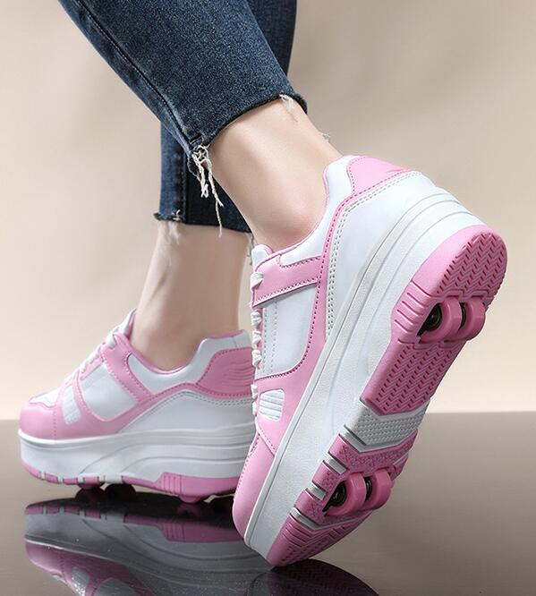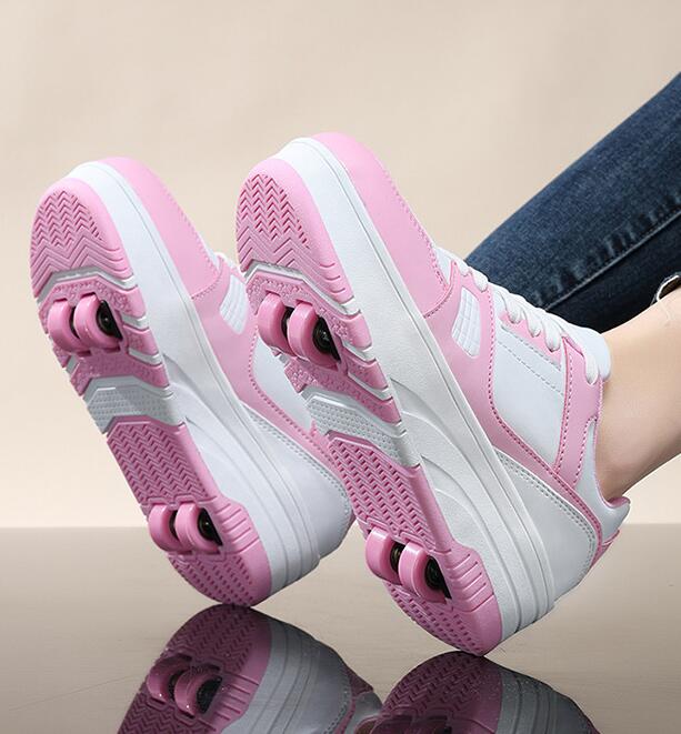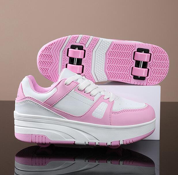 ローラーシューズ キッズ大人 子供メンズ 靴 レディース靴女の子 男の子 子供用運動靴 男女兼用 ギフト 4輪ピンクブラック海外通販 スポーツ