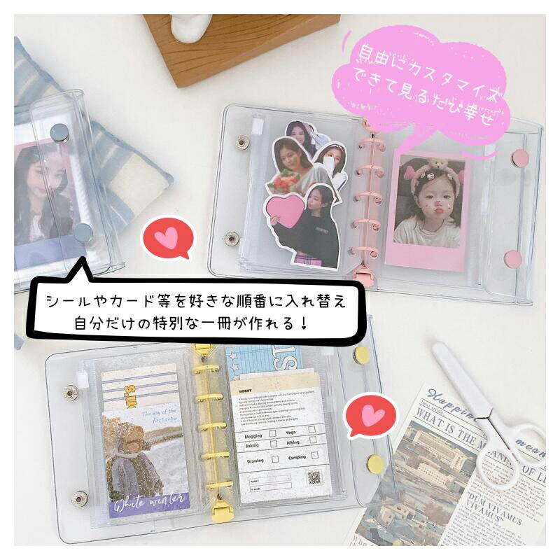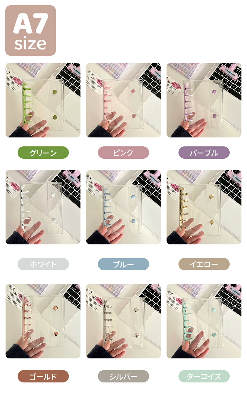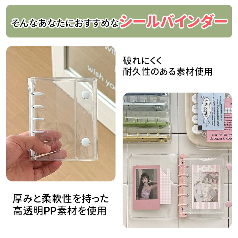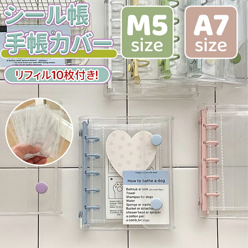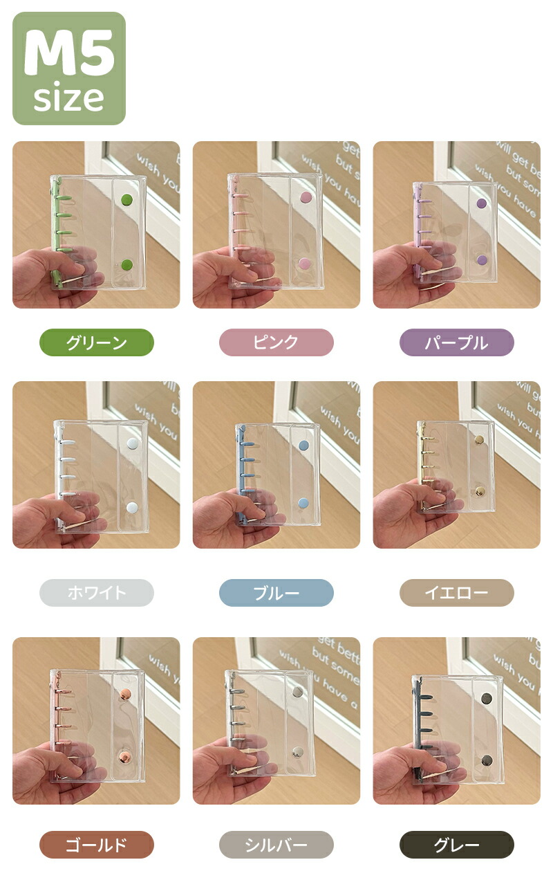 シール帳 バインダー 透明 リフィル 日用品雑貨 文房具 手芸 新作 M5イズ A7サイズ グリーン ピンク パープル ホワイト ブルー イエロー ゴールド シルバー ターコイズ グレー