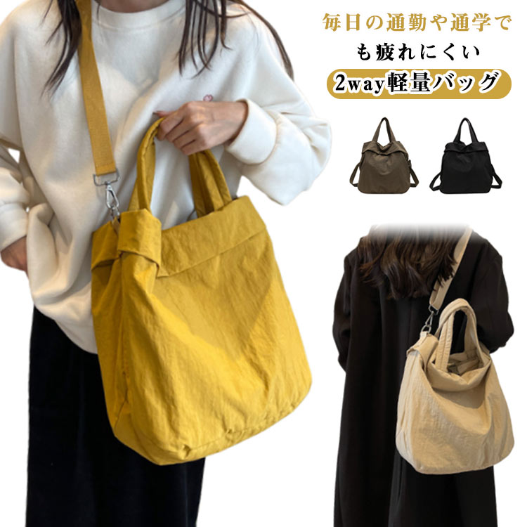 ショルダーバッグ レディース 軽量 トートバッグ 大容量 2way ナイロン 斜めがけ バッグ 通勤バッグ 大人 通学 鞄 かばん カバン はっ水ハンドバッグ 軽い 仕切り付き 手持ち シンプル