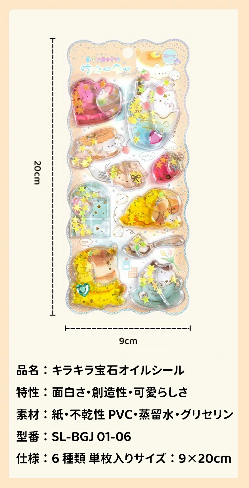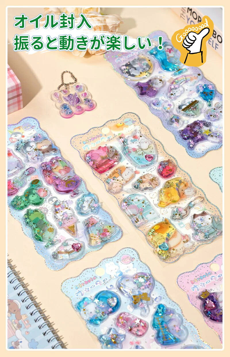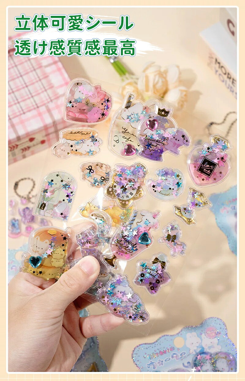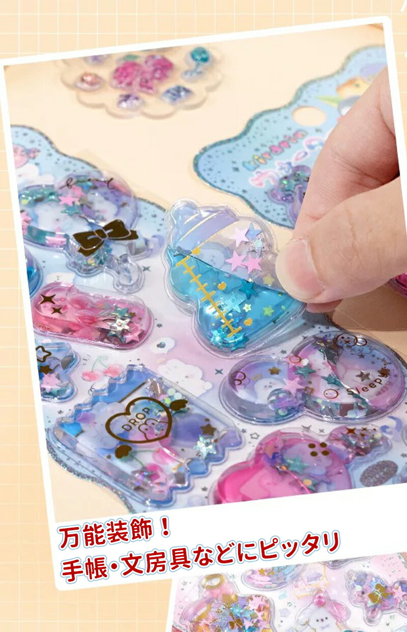 ドロップシール 水入りシール ぷっくり ウォーターシール 3D 立体 精巧な柄 手帳用装飾 DIY クリエイティブ 個性的 かわいい ギフト ファッション