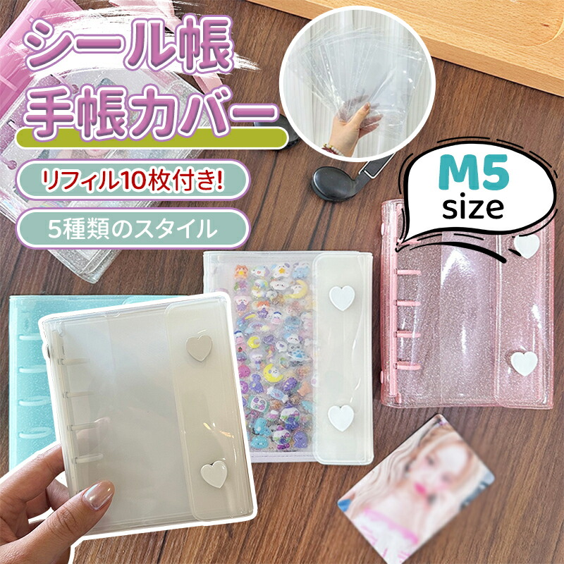 シール帳 リフィル10枚 M5 ハート 文房具 事務用品 手帳 ノート システム手帳 新作 ピンクラメ クリアラメ ホワイト ピンク ミントグリーン