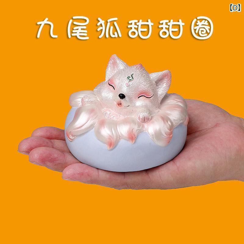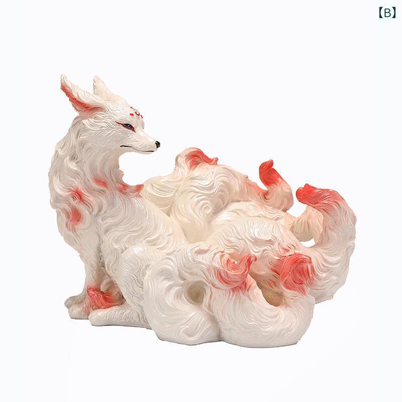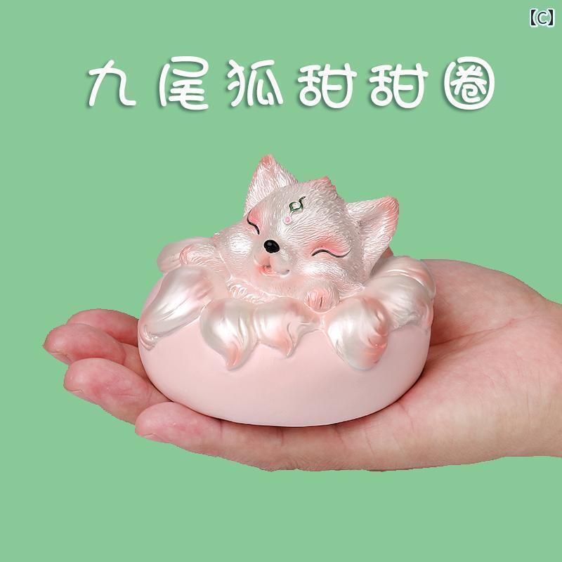 インテリア オブジェ の 手 描き 樹脂の 小さい 九 尾の キツネ かわいい キツネの 車 アクセサリーの 装飾品 装飾 デスク トップ センターコンソールの