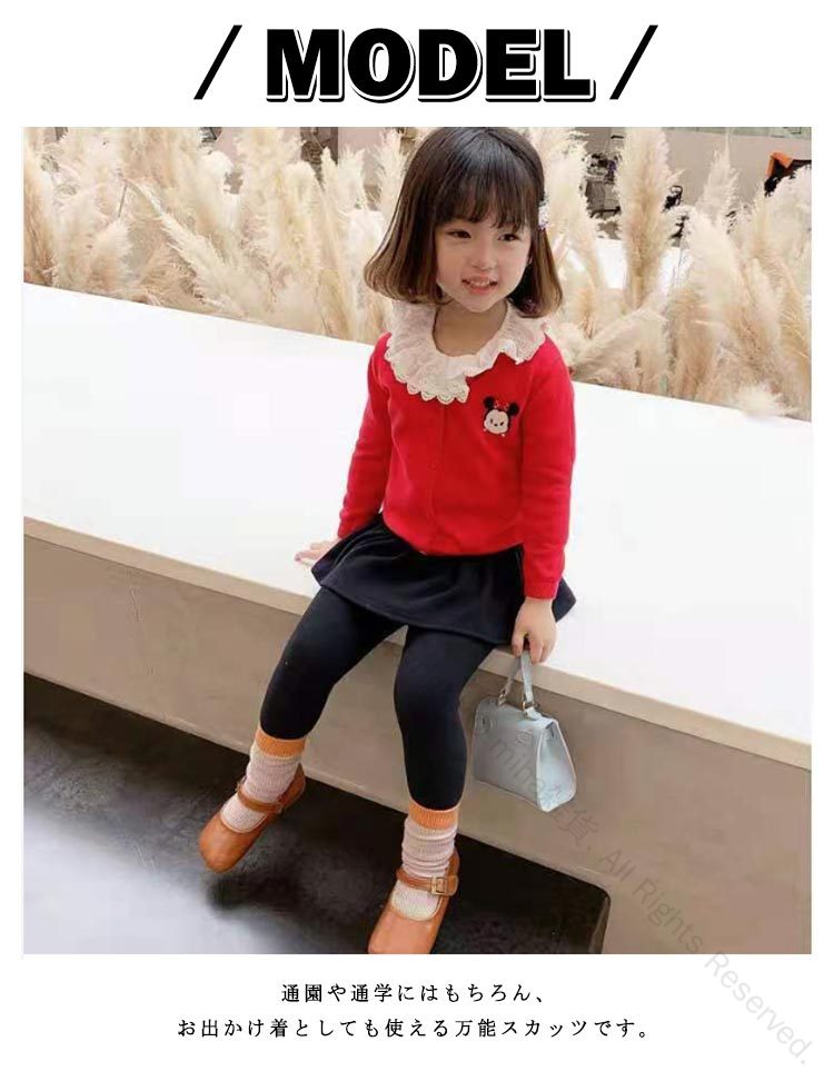 スカートとスパッツが一体になったスカッツ適度な厚さのストレッチ素材で初秋から夏前まで長~く着回せます。ウエストはゴムになっていますので、着脱も楽です♪縫製もしっかりで丁寧で、元気に動きまわるお子様にもご安心頂きます。通園や通学にはもちろん、お出かけ着としても使える万能スカッツです。