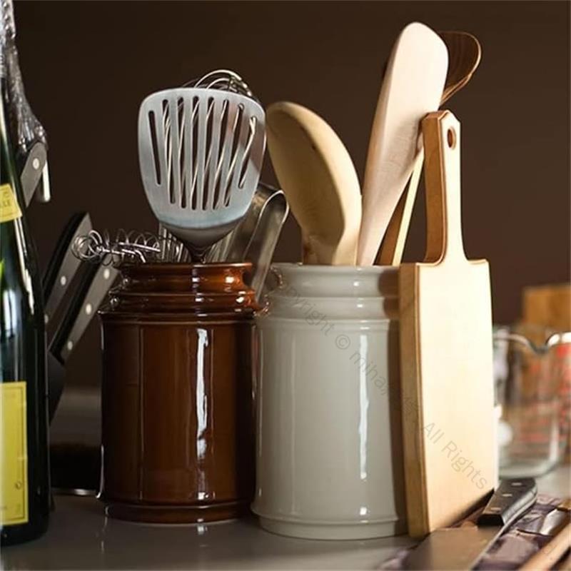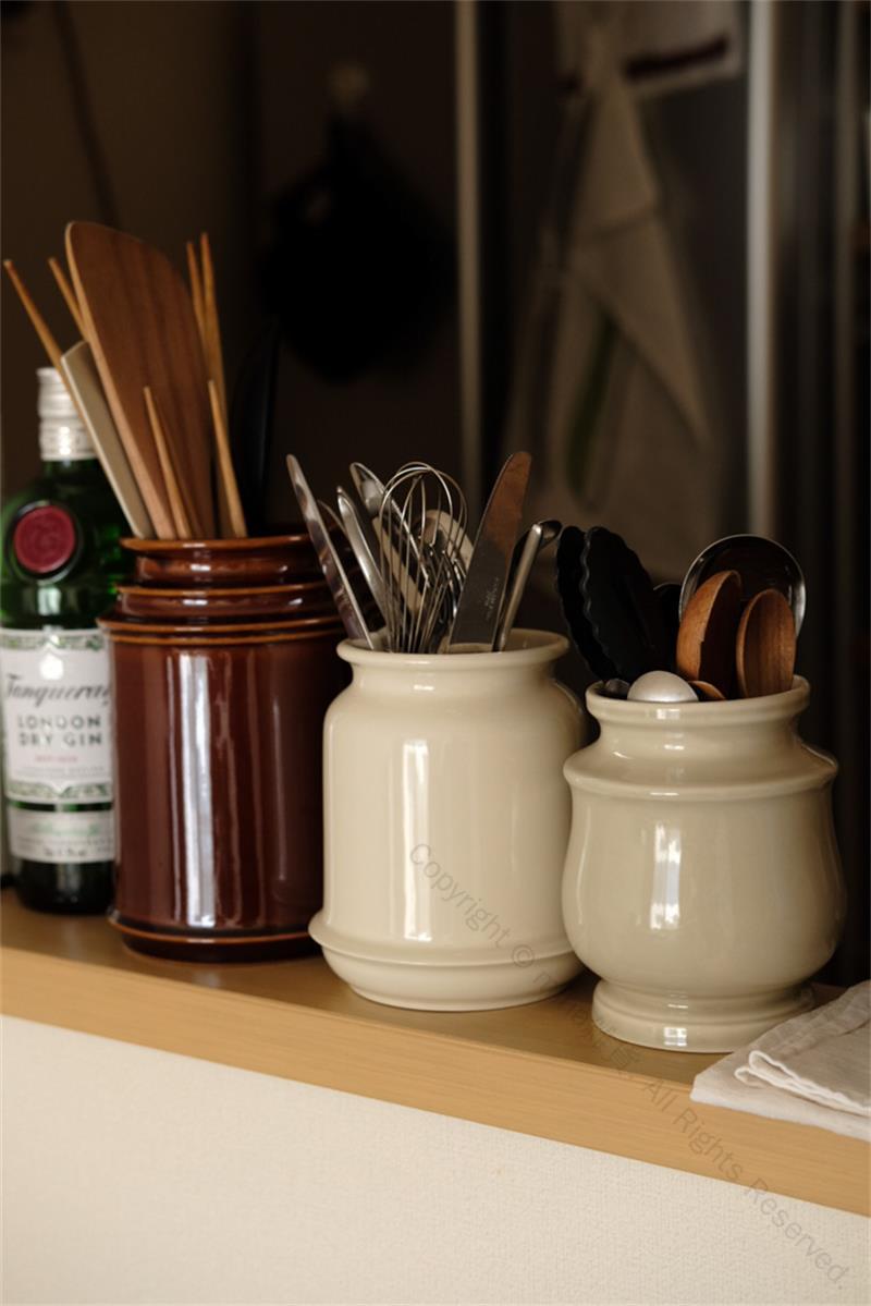 キッチンツールキャニスター 保存容器 磁器製 シンプルデザイン おしゃれな箸立て カトラリー立て に最適 キッチン収納用品 樽型