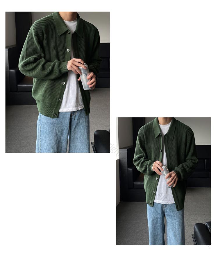 厚手ニットカーディガン メンズ長袖カーディガン ポロニット上着 秋用ニットアウター 洗えるニット羽織り 紳士用ニットトップス ボタン付きニットコート 暖かい襟付きカーーディガン 前開きニットジャケット