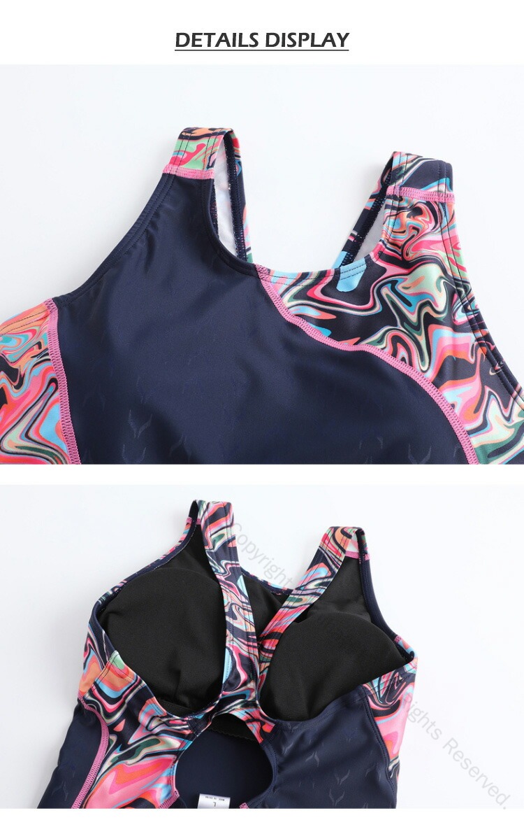 この競泳水着は、女性のためにデザインされたフィットネス用のワンピース水着です。スリムなデザインで体型をカバーしつつ、動きやすさを追求しています。胸パッド付きで安心感もばっちり。ジュニアや女の子にもぴったりで、練習用としても最適です。カラーはブルーとブラックの2色展開で、サイズもMから3XLまで豊富に揃っています。これで、プールでの練習がもっと楽しくなりますよ!