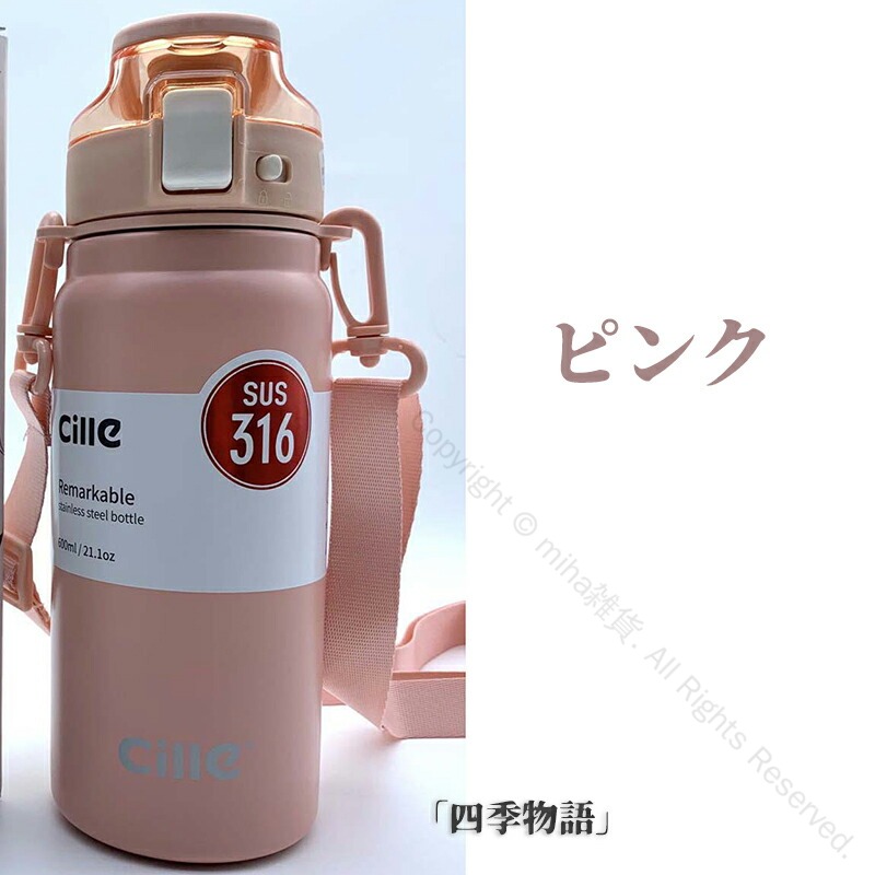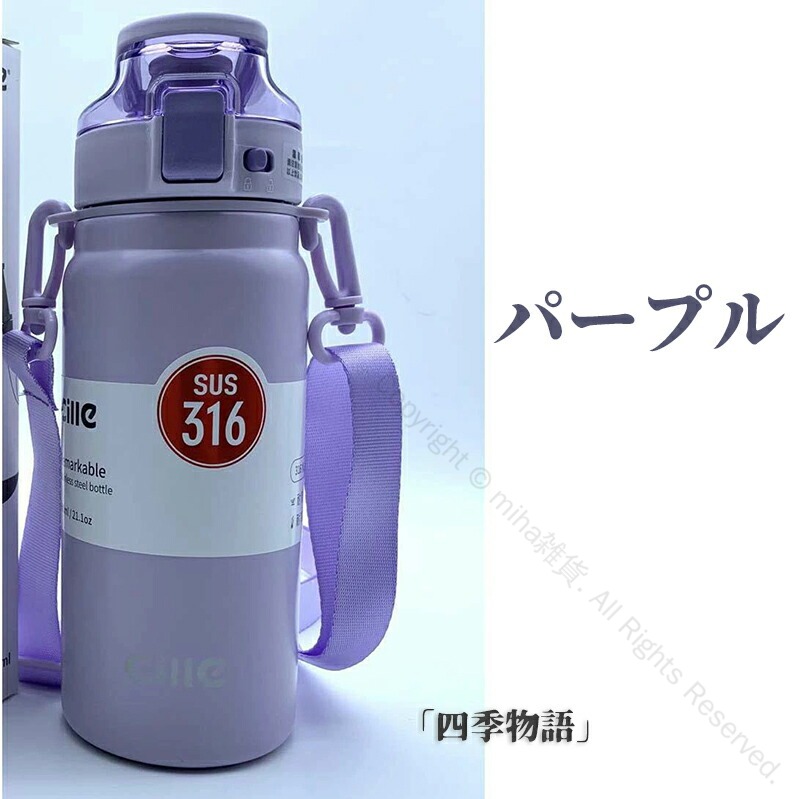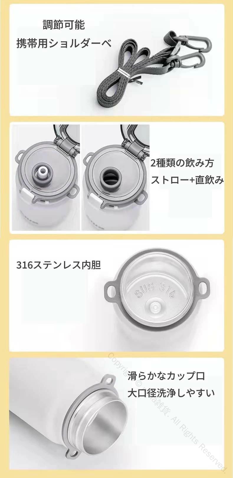 600ML 水筒 キッズ 子供用 2way ストロー 直飲み 小学生 おすすめ 女の子 男の子 316ステンレス 中学生 大容量 ダイレクトボトル 保温 マグボトル 保冷 ストラップ 紐 ワンタッチ