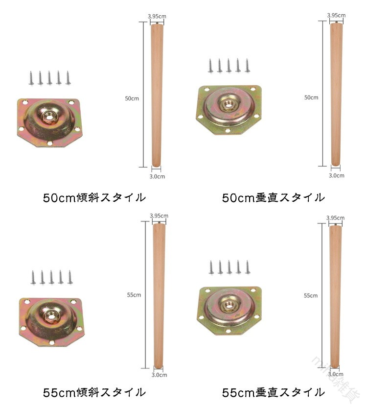 .4 本 セット の 無垢材 家具 脚 は 木製 の 脚 で テーブル 脚 や 丸棒 固定 脚 として 使えます。10 cm から 55 cm まで の サイズ バリエーション が あり、テーブル ソファー 椅子 ベッド キャビネット の 足 上げ や 交換 に 最適 です。DIY に 便利 な 傾斜 スタイル と 垂直 スタイル も 用意 しています。。