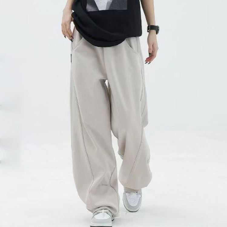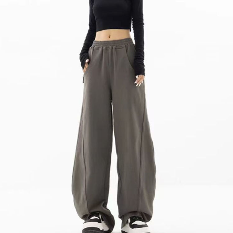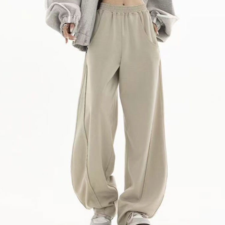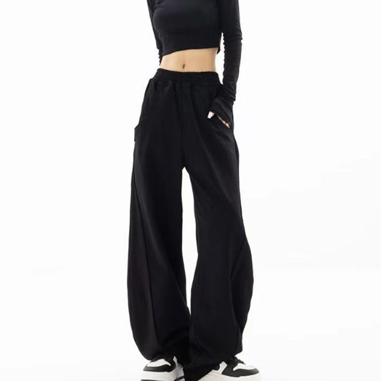 レディース ワイドパンツ ゆったり スウェット 秋 カーブパンツ 春 パネルライン ルーズ ロングパンツ パンツ スタイルアップ カジュアル ポケット ウエストゴム 無地