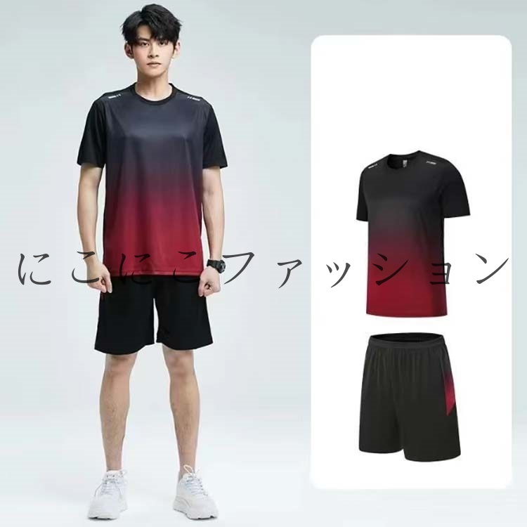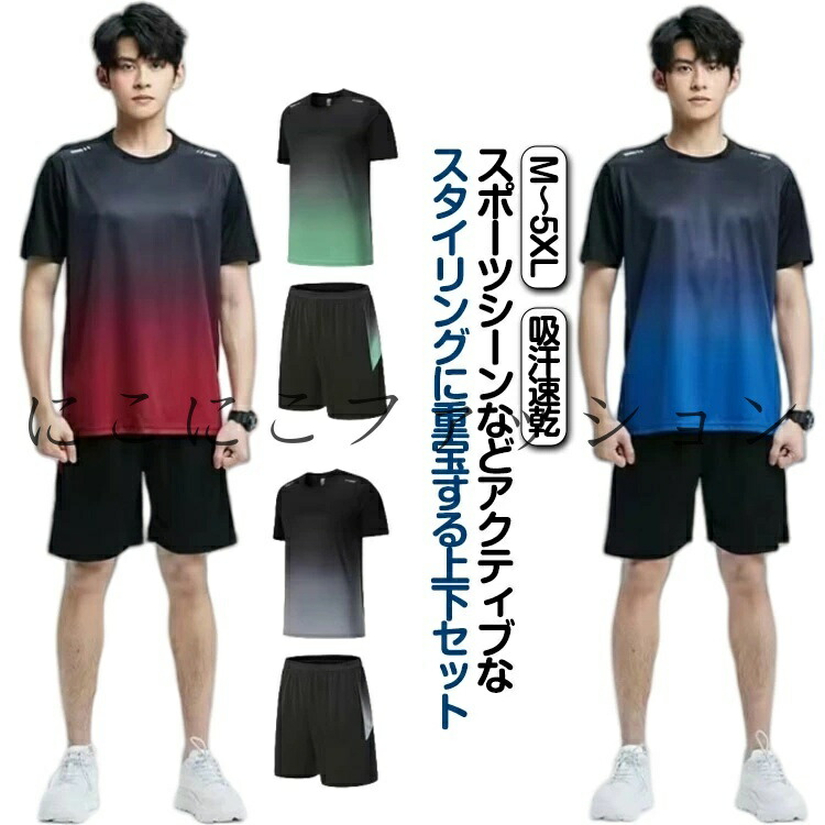 ジャージ 接触冷感 半袖 上下セット スポーツウェア 半ズボン 通気性 メンズ 速乾 ドライ 部屋着 Tシャツ 軽量 セットアップ 冷感 トレーニングウェア ジムウェア シ ランニングウェア