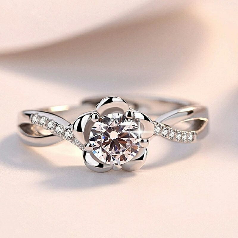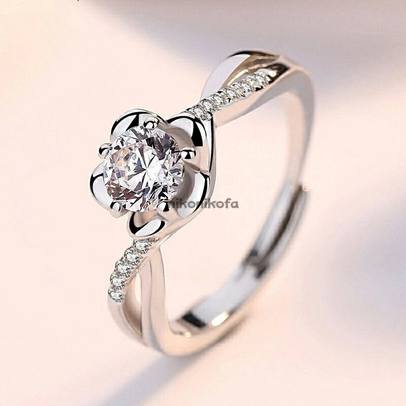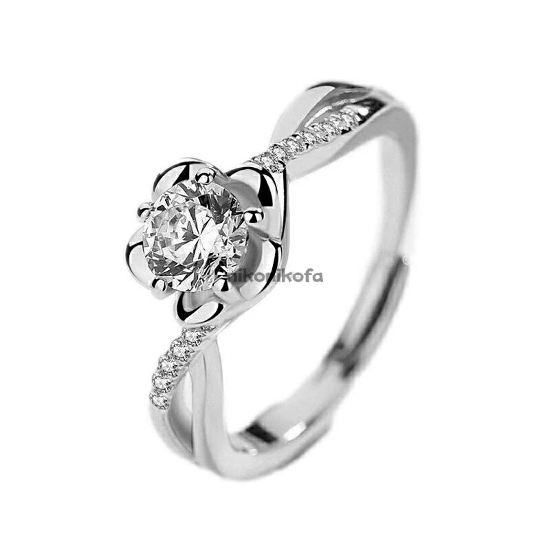 指輪 レディース 梅の花 モチーフ ラインストーン リング 大粒 ジルコニア 花 梅 ストーン シルバー アクセサリー 上品 エレガント 女性 ファッションリング 誕生日 記念日 ギフト ホワイトデー