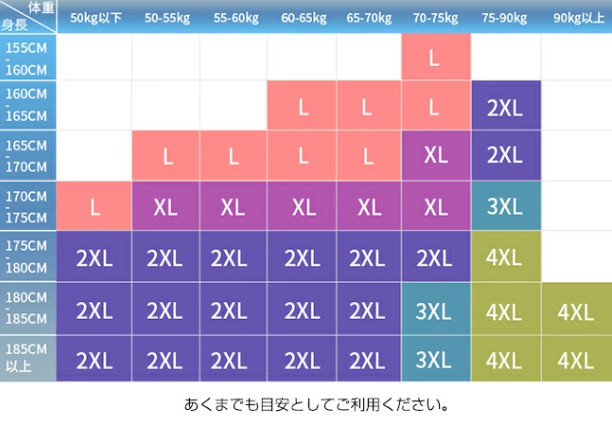 サイズ/寸法 L、XL、2XL、3XL、 4XL