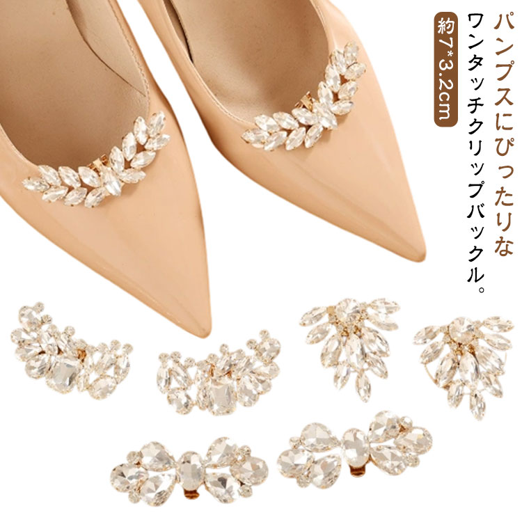 シューズクリップ キラキラ フェイク水晶 シューズアクセサリー ビジュー ゴージャス お呼ばれ 結婚式 パンプス 飾り 装飾品 クリップ おしゃれ 取外しOK レディース 女性 セレモニーシ 着せ替え