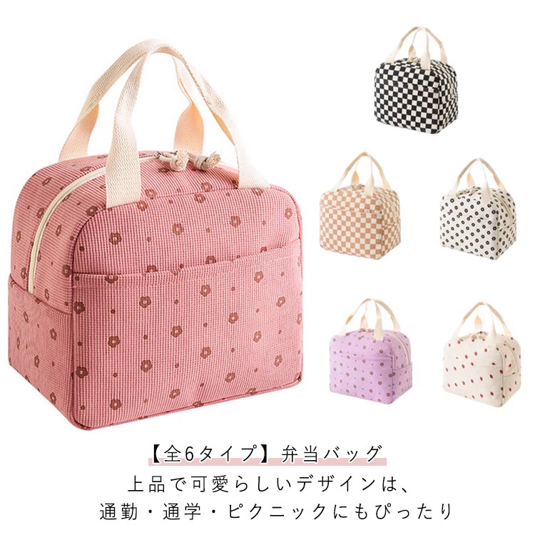 手提げ 大容量 ランチバッグ 保温 保 弁当箱 水筒 子供用弁当箱 水筒 お弁当箱 お弁当袋 お弁当袋 特集 ピンク花柄 ブラックチェック柄 ブラウンチェック柄 パープル花柄 アイボリー花柄 イチゴ柄