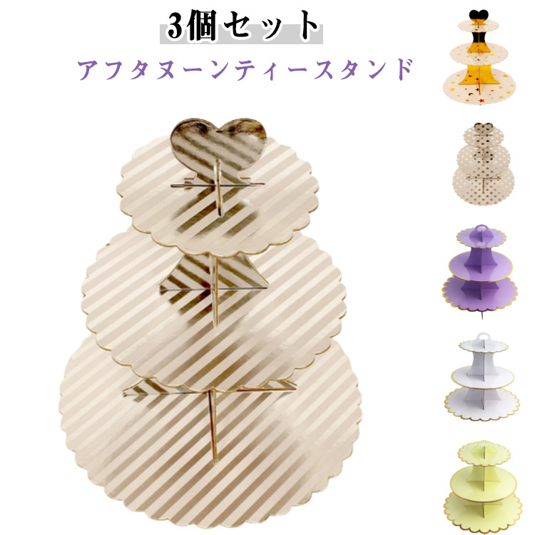 プレートスタンド 3段 クッキー ケーキスタンド 使い捨て 組み立て式 ケーキ皿 フルーツ ケーキ ディスプレイ用 ティータイム パーティー用 おしゃれ カフェ
