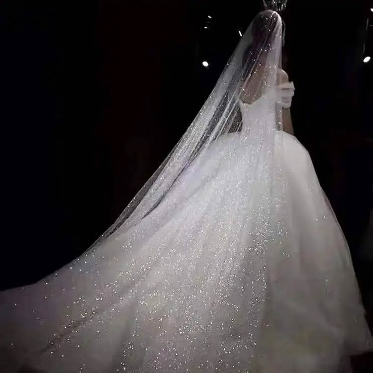 ウエディングベール ロング キラキラ ラメ入り 3M ウェディング ベール ロングベール 2層 ダウン可能 輝く 高級感 透け感 ホワイト シャンパン 花嫁 ヘッドドレス ヘアアクセサリー コーム付