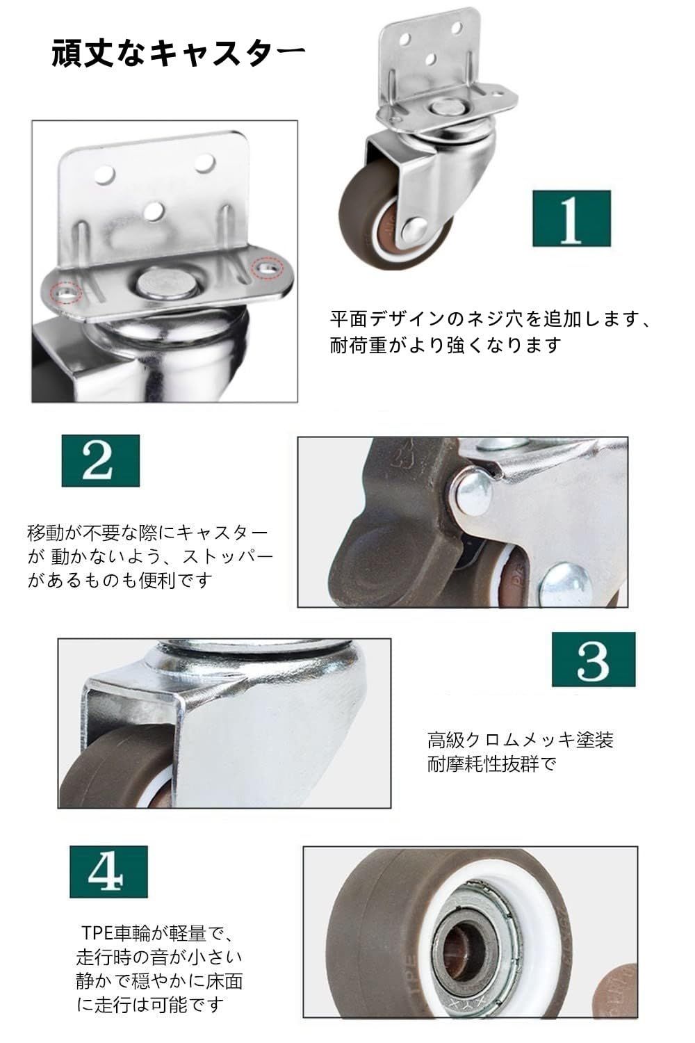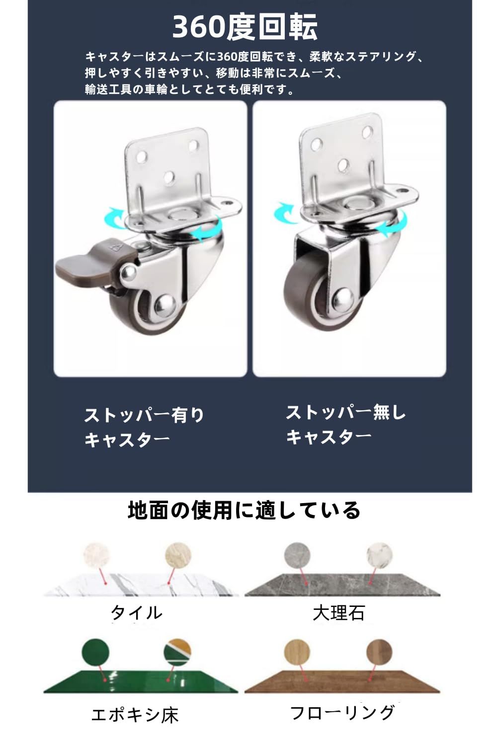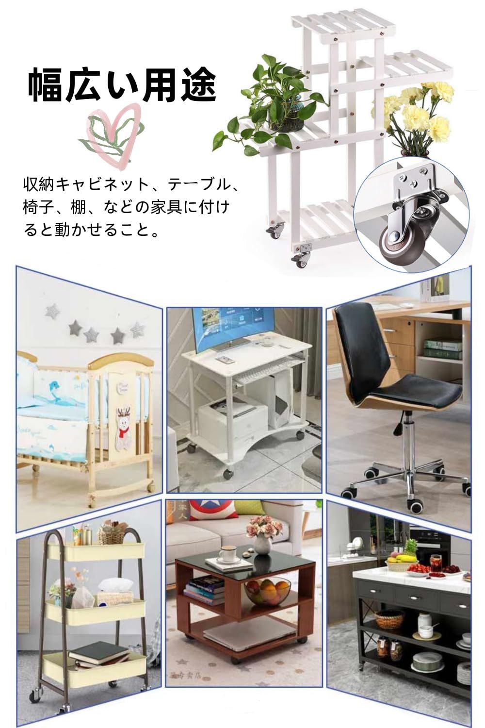 収納キャビネット、テーブル、椅子、棚、などの家具に付けると動かせること。設置が簡単、コーヒーテーブル、植物棚、シューズキャビネット、様々な台車、様々な機材ラック、作業台などに広く使用されています。