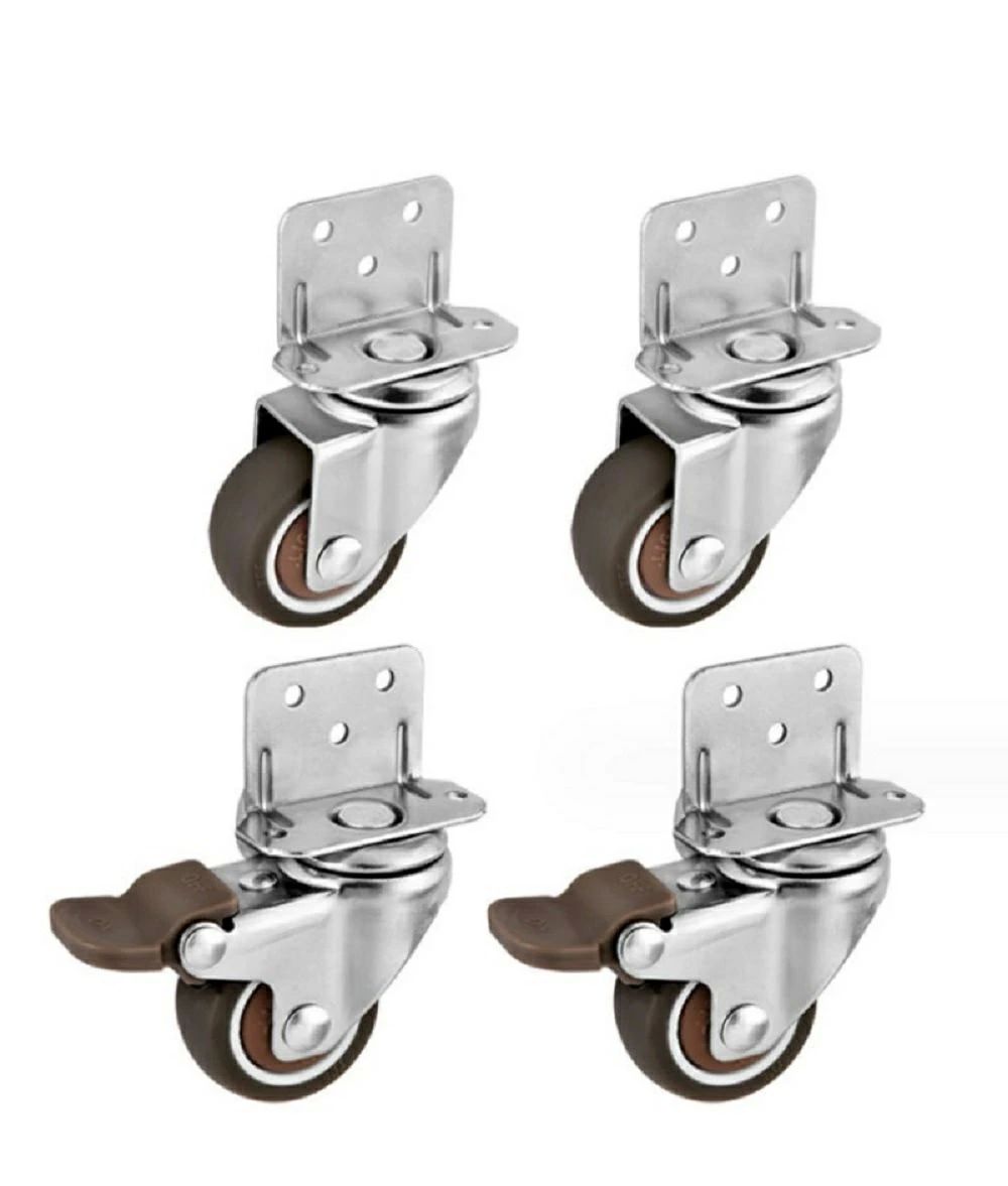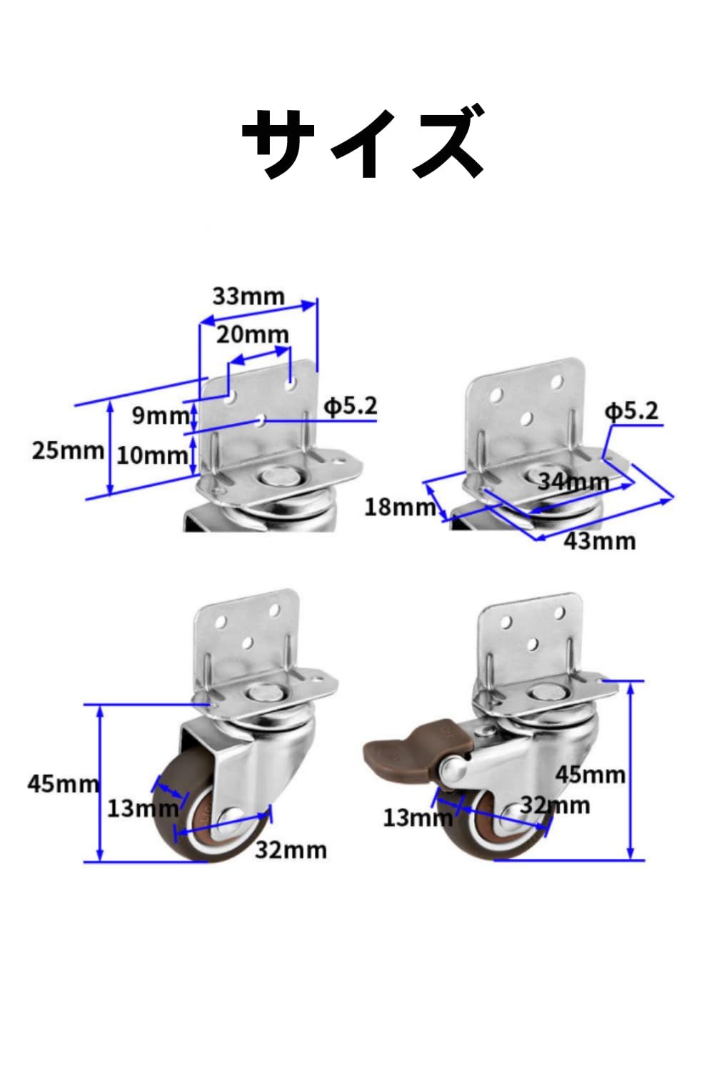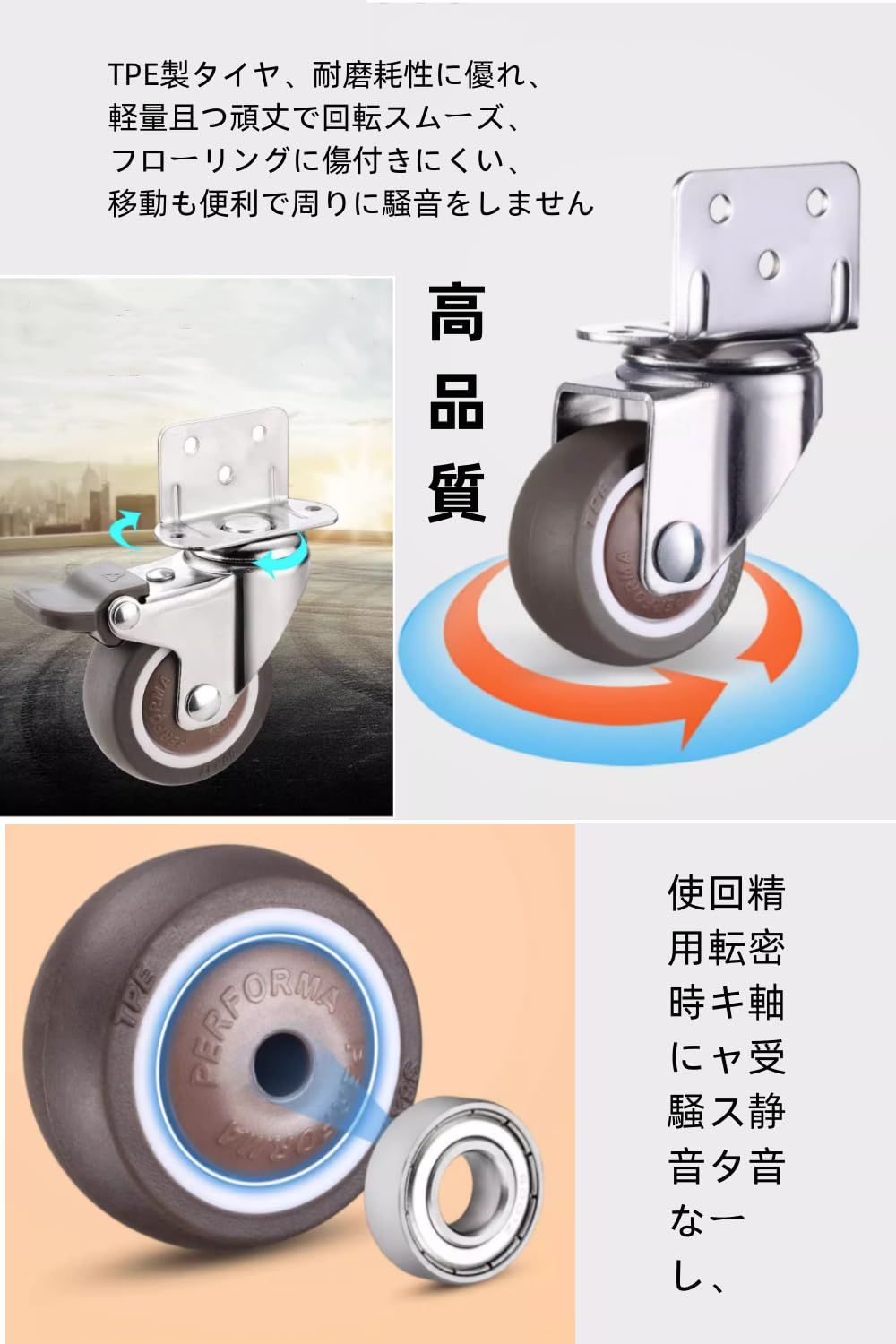 L型 キャスター 4サイズ ブレーキ付き 4個セット 360度回転 静音 自在車キャスター TPEゴム輪 DIY用 交換用 便利グッズ 取替え