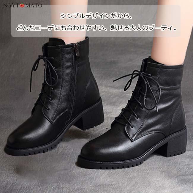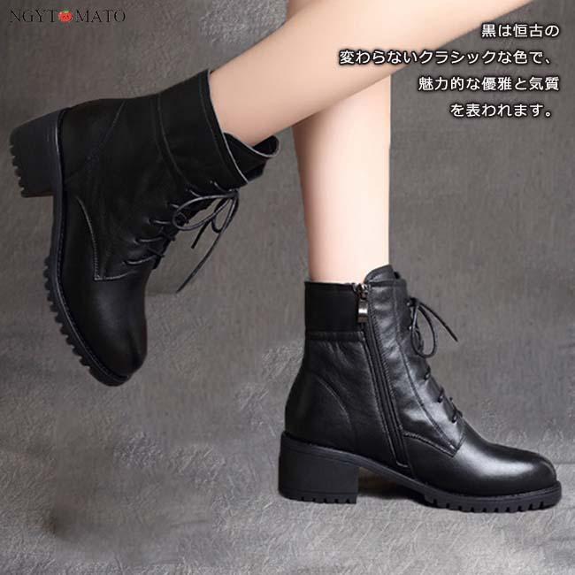 ショートブーツ 黒 レディース ブーツ 袴 厚底 レースアップブーツ サイドジッパー ローヒール 編み上げブーツ 袴用 ボア付き 履きやすい 歩きやすい 裏ボア