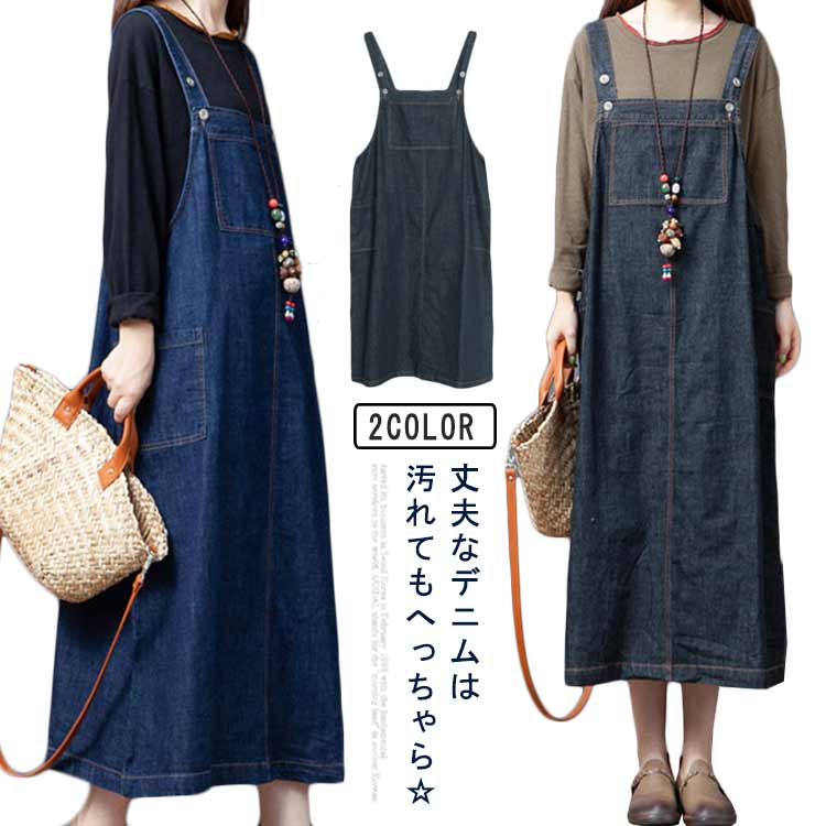 サロペット サロペットスカート ロング レディースファッション 特集 ブラック ネイビー M L XL 2XL 3XL