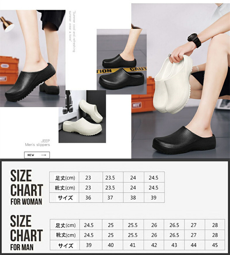 コックシューズ 男女兼用 厨房シューズ レディース靴 サンダル ビーチサンダル 豊富な品揃え ブラック ホワイト 23-23.5 24-24.5 25-25.5 26-26.5 27-27.5