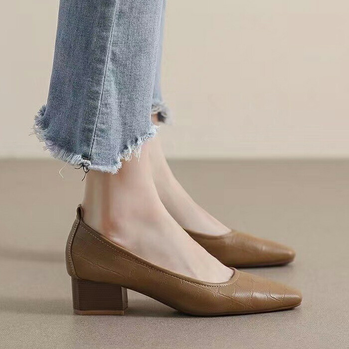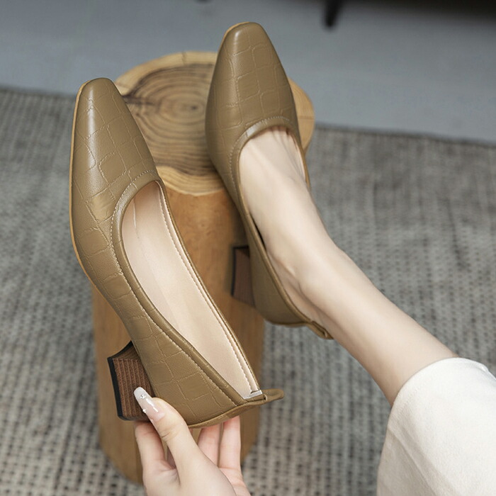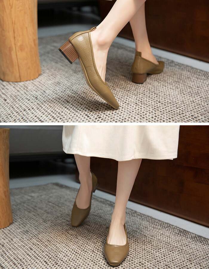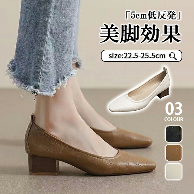 パンプス カジュアル レディース 柔らか 歩きやすい 5cm 痛くない ローヒール 太ヒール チャンキーヒール 22.5cm シンプル カーキ ベージュ 25.5cm
