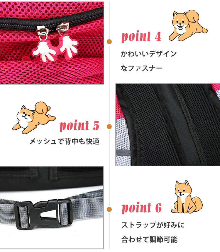 ◆ 飛び出し防止フック付き。首輪につなげば安心。首輪がない場合でも、メッシュネットを閉めれば飛び出し防止可能です。