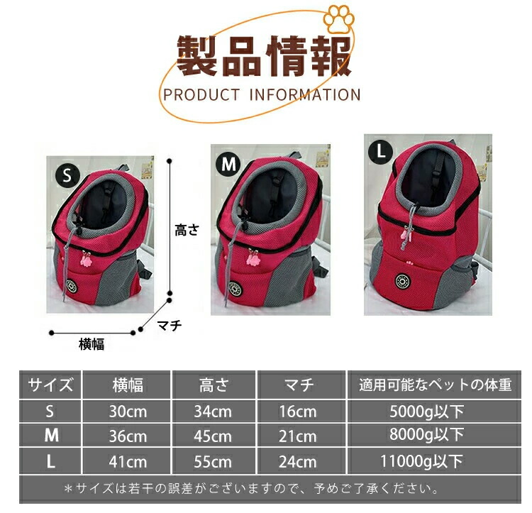 ペットキャリー リュック ペット 犬 ペット ペットグッズ 豊富な品揃え ブルー ロースレッド グリーン オレンジ ブラック レッド S M L