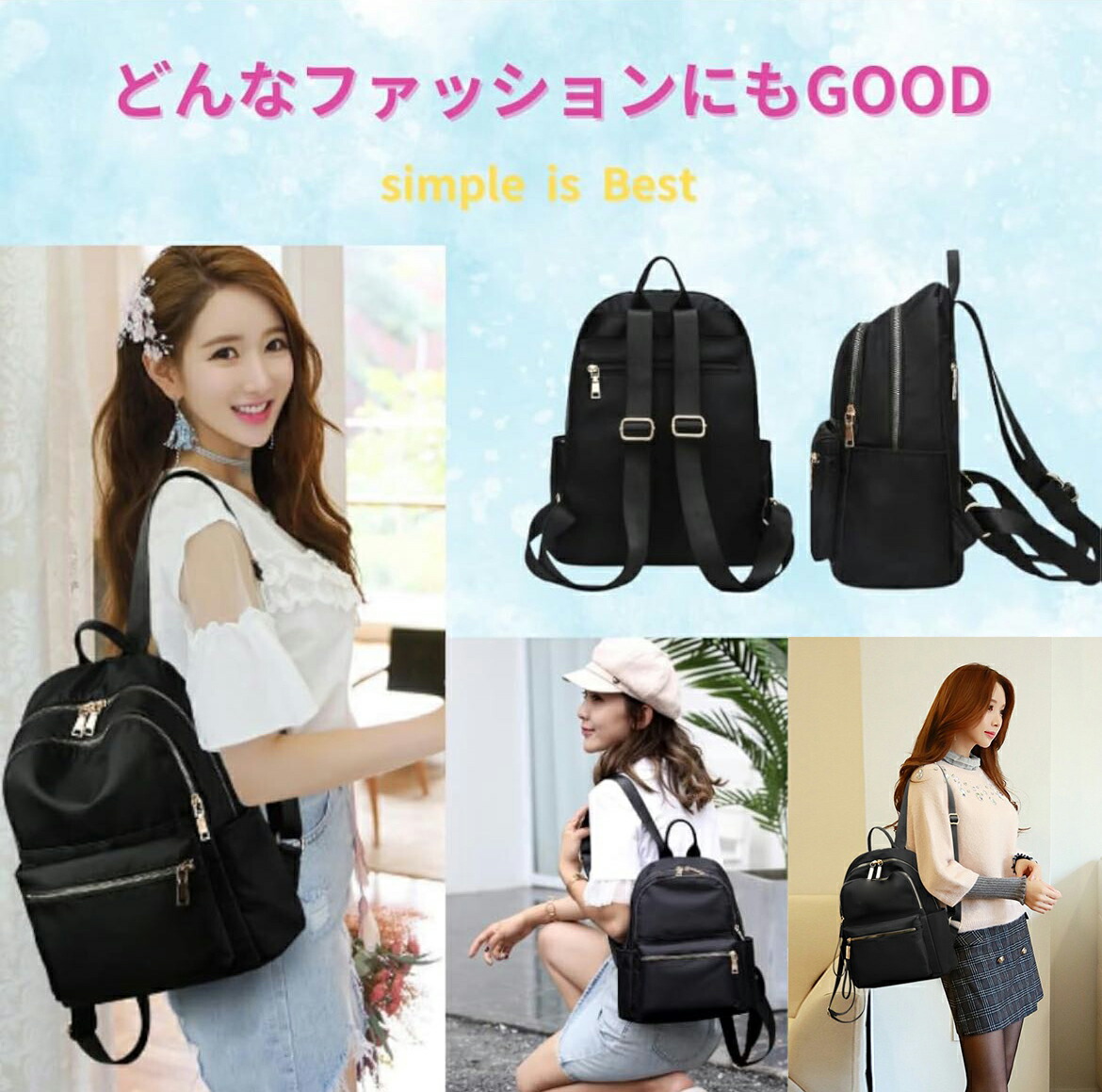 【おしゃれで機能性抜群のレディースリュック】 シンプルデザインのリュックに、可愛いフラワーキーホルダーのアクセントが上品なレディースリュックサックです。高品質ナイロン素材採用で、耐久性があり丈夫で、撥水仕様のため日常の雨をしっかり防ぐことができます。また軽量なので一日背負っても疲れません。ゴールドの金具がアクセントとなったエレガントなバックパックです。カジュアルからきれいめまで幅広く活用でき、通勤・通学にもぴったりです。