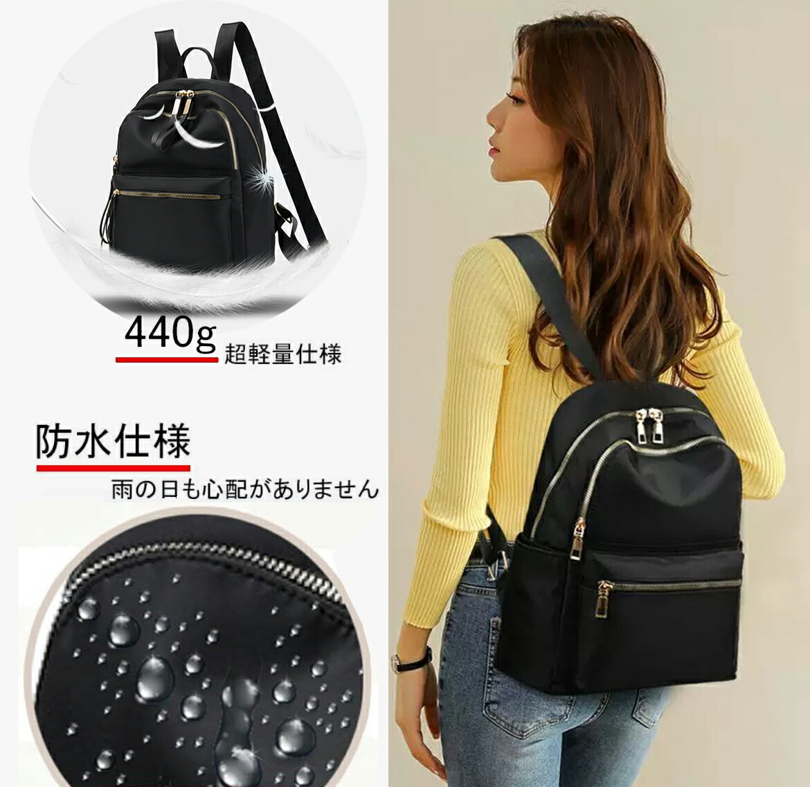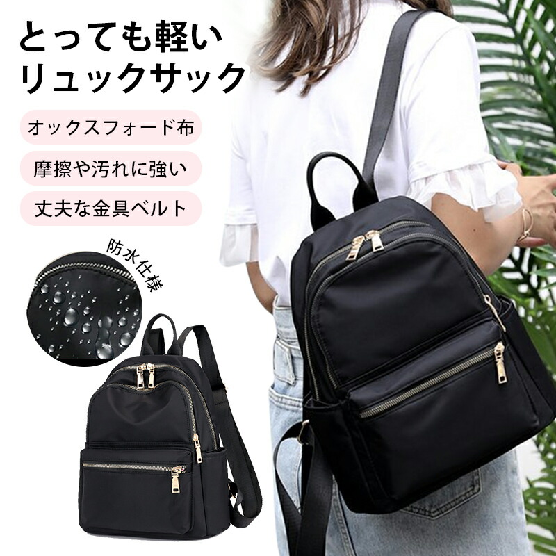 リュック レディース とっても軽い460g 軽量 通勤 通学 おしゃれ リュックサック ナイロン きれいめ 撥水 ブラック 旅行