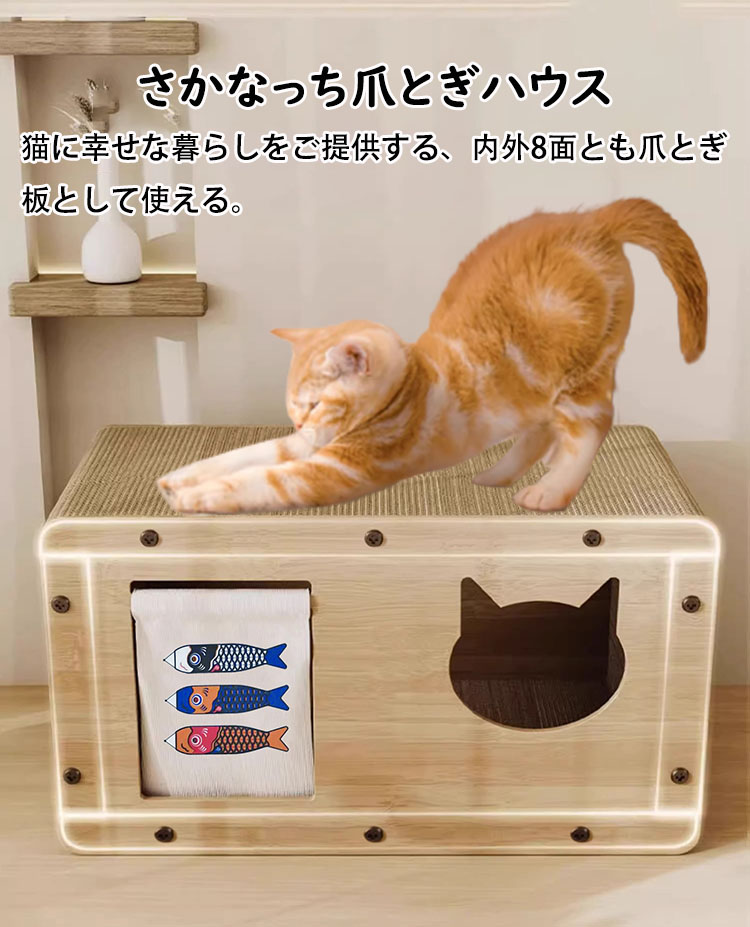 猫 爪研ぎ 段ボールハウス 爪とぎ キャットハウス 組立簡単 ペットベッド ダンボール 隠れ家 8面 猫爪研ぎ 猫の爪研ぎ キャット 猫窓 可愛い 耐久性 通気 鯉柄のれん 猫の爪とぎベッ 耐摩耗