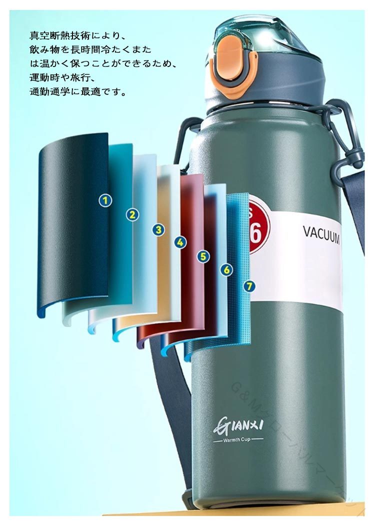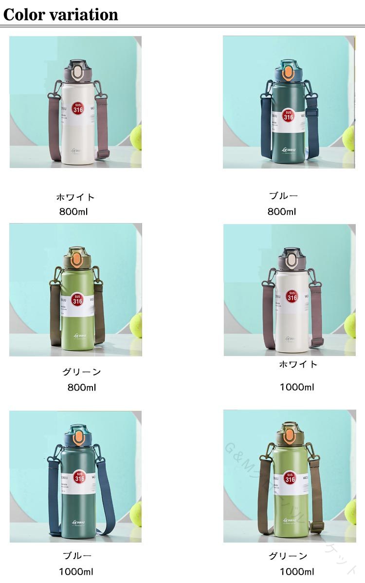 1. 水筒 子供用 1リットル 真空ス 弁当箱 水筒 子供用弁当箱 水筒 水筒 コップ 水筒 豊富な品揃え ホワイト ブルー グリーン 800ml 1000ml