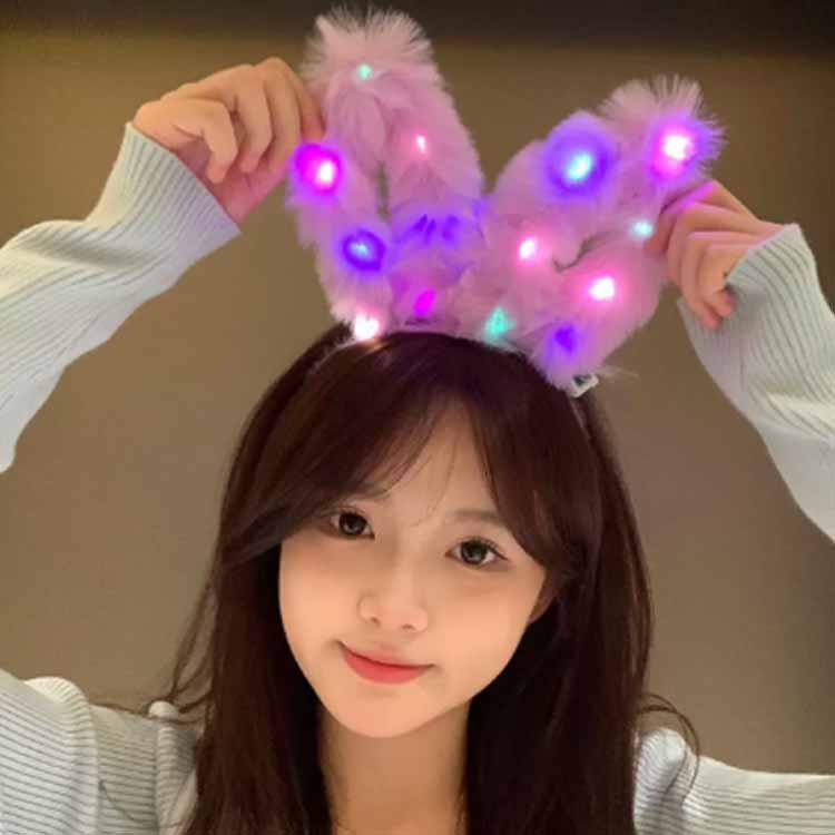 光る、もこもこウサギ耳ヘッドアクセサリー!