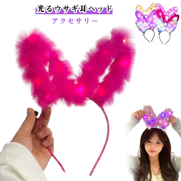 光る ふわふわ うさぎ レディース うさぎの耳 コスプレ うさ耳 バニーガール カチューシャ ウサギ うさみみ 仮装 コスチューム 動物コスプレ 兎 クリスマス パーティ ハロウィーン