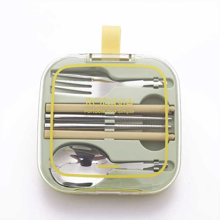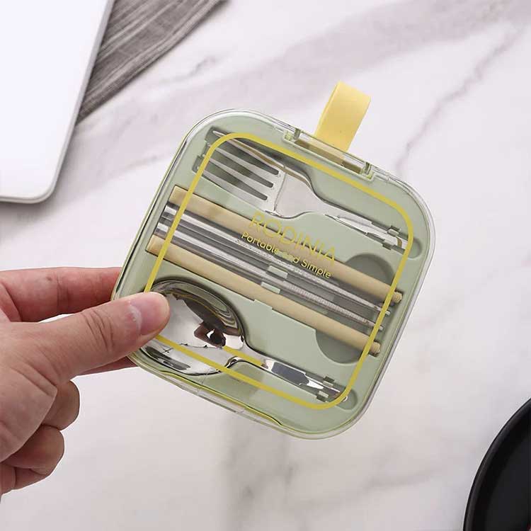 304ステンレスを使用した、組み立て式のフォーク+スプーン+箸の3点セット(ケース付き)。