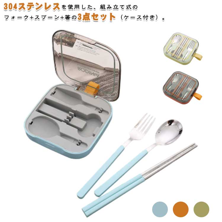 コンパクト 3点セット 食器 組み立て式 コンビセット お弁当 ケース付き 北欧 スプーン ステンレス お箸 エコカトラリー 持ち運び 便利 セット 携帯 キャンプ 通勤 通学 フォーク