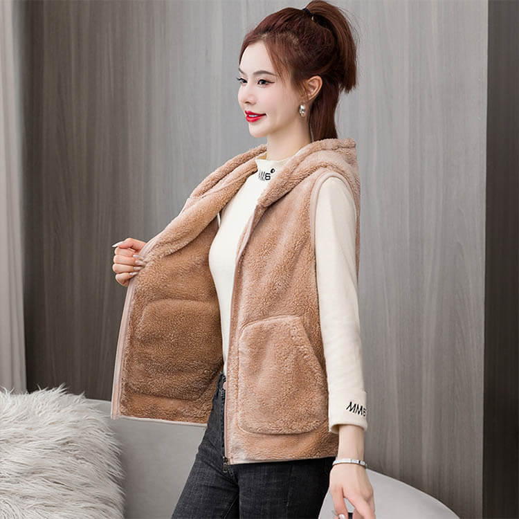 フード付き ボアジャケット ボアベスト レディースファッション 豊富 ベージュ ブラウン ワインレッド ダークピンク アイボリー ブラック M L XL 2XL 3XL 4XL
