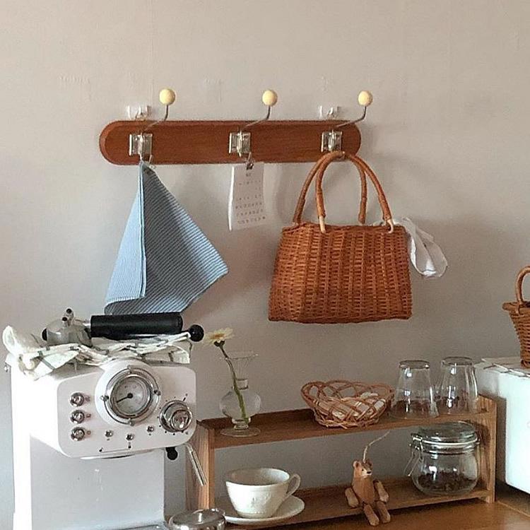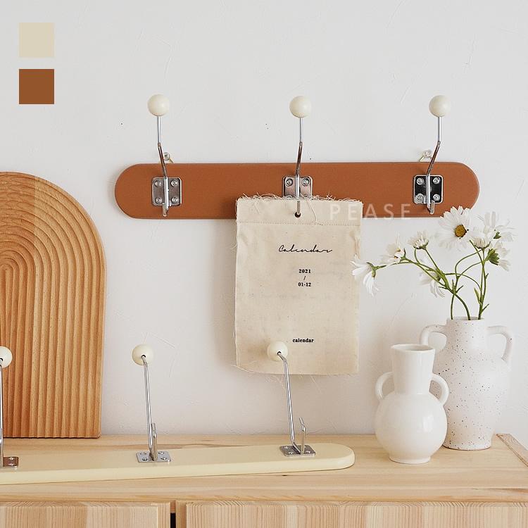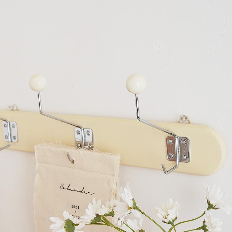 レトロ感のあるデザインが可愛いクリーム ブラウンカラーのウォールハンガー3フックです。リビングや玄関やキッチンなどに飾るだけでお部屋が韓国インテリア風に大変身します。帽子やバッグや小物などを掛けるハンガーにピッタリです。