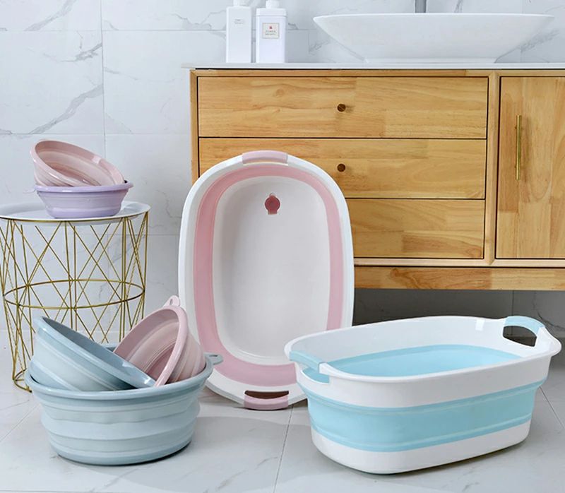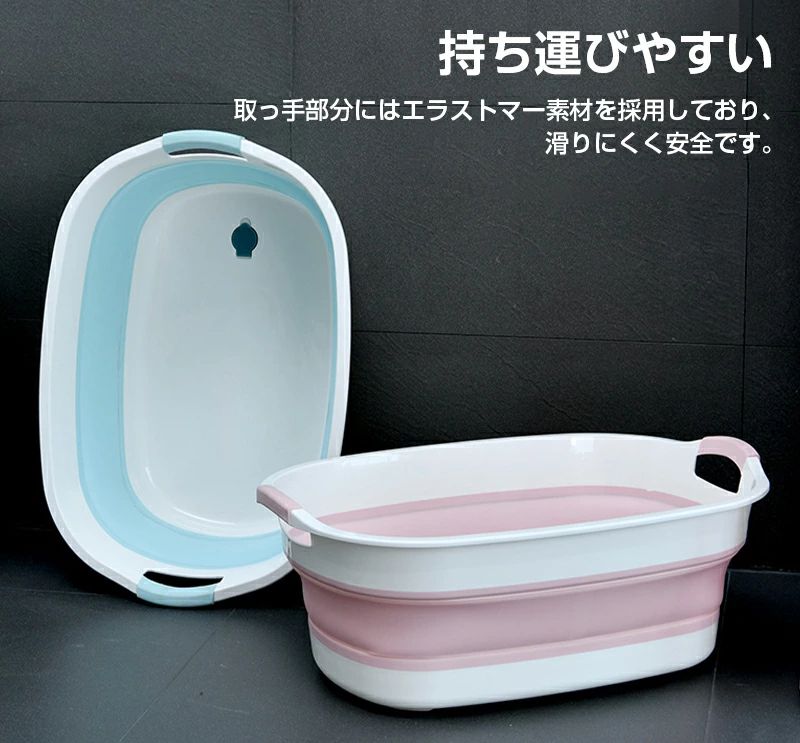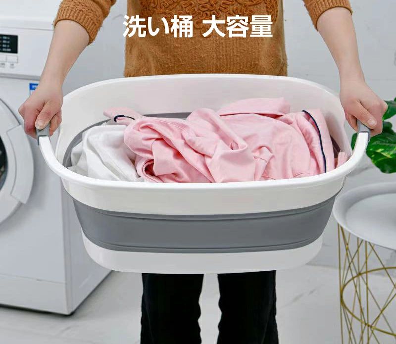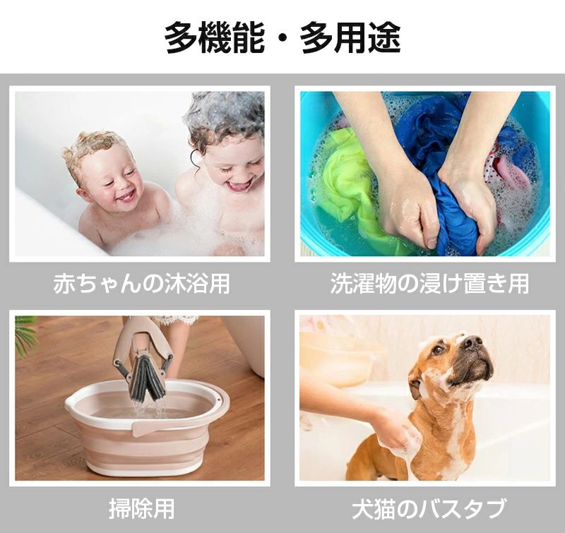 【多機能、多用途】洗濯物の浸け置き用、犬猫のバスタブ、衣類のつけ置き用、赤ちゃんの沐浴用、災害時の断水前に水の蓄え用、収納用、また、ゴミ箱、お部屋の収納には家庭用のよいものだ!キャンピング、旅行のとき、さまざまなものを収納できる。さすがに多機能な洗い桶です。