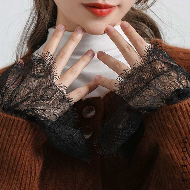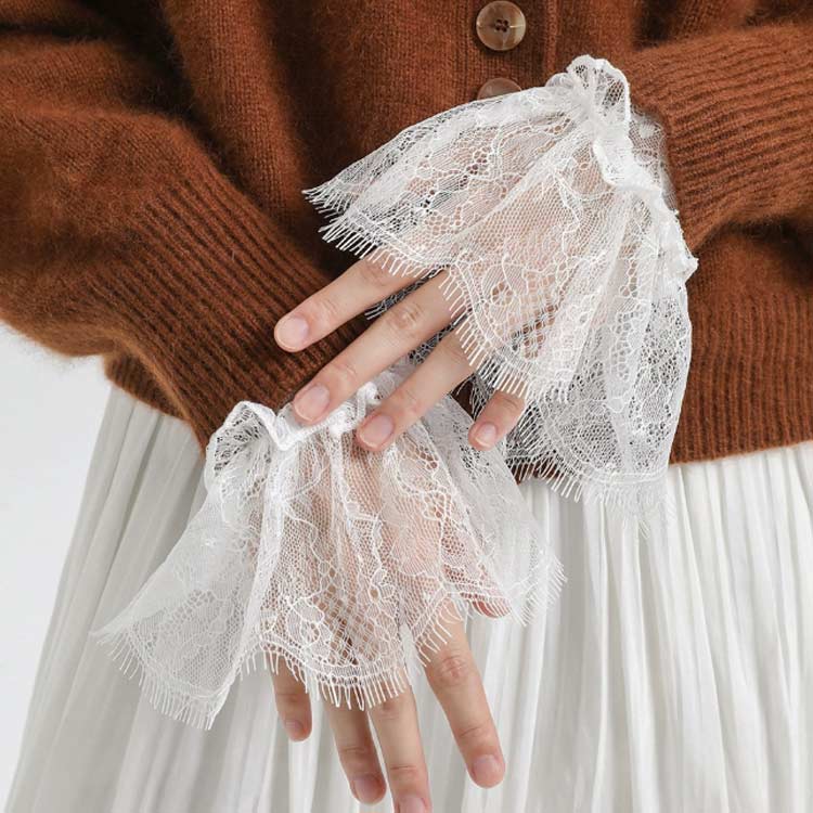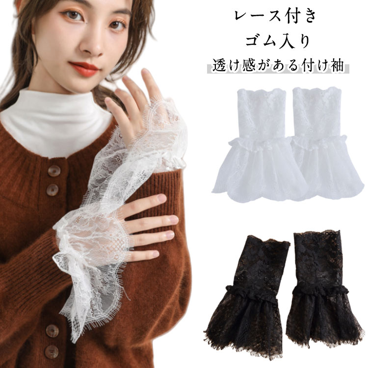 付け袖 レディース フェイクスリーブ 総レース フリル ふんわり 透け感 軽量 持ち運び 重ね着風 ロリータ 大人可愛い おしゃれ きれいめ フォーマル 女性用 レイヤード 透かしレース アクセサリー